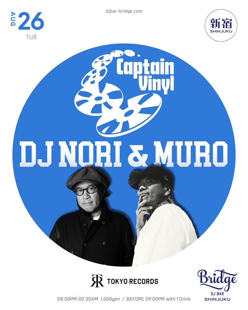 DJ活動46年を超えるDJ NORIと、King Of Diggin’の異名を持つMUROによるCAPTAIN VINYLは、2025年春から新宿Bridgeで偶数月第4火曜日定期開催中!
