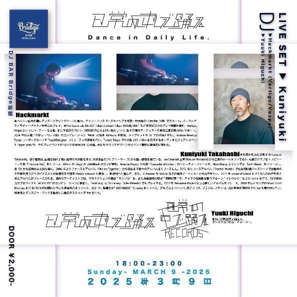 札幌からKuniyuki Takahashi氏をお招きし、ライヴセットを披露頂きます。