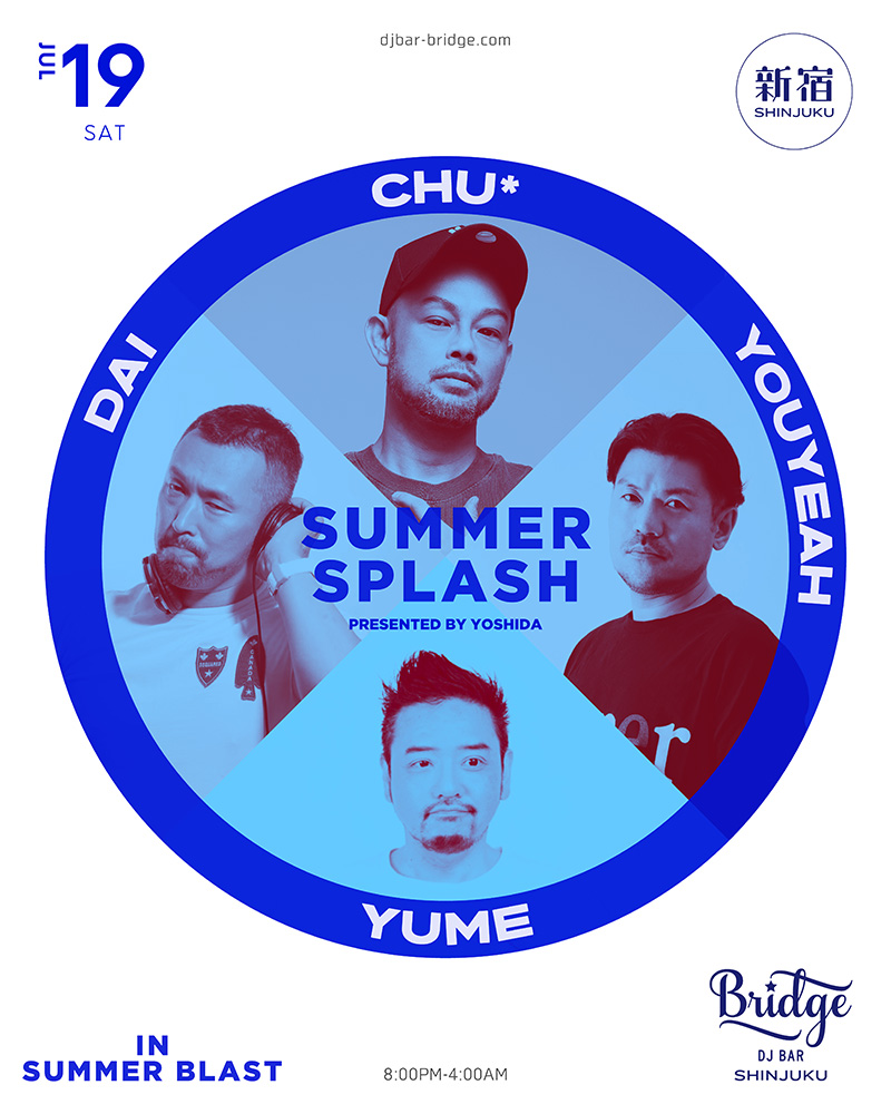 今年のSUMMER BLST 2025は、最高のサウンドシステムによる、夢のような音楽体験を提供する会場DJ BAR Bridge SHINJUKU。アジアを代表するDJ達が勢揃いし、音とライティングによる驚きと感動の空間で、皆様をお待ちしております。