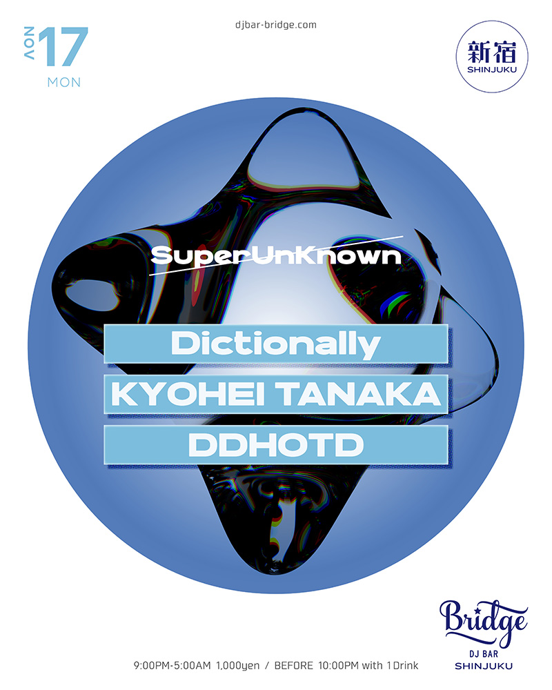 SuperUnKnownはUKガラージプロデューサーのDictionallyとハウスプロデューサーのKYOHEI TANAKAのマンスリーイベント