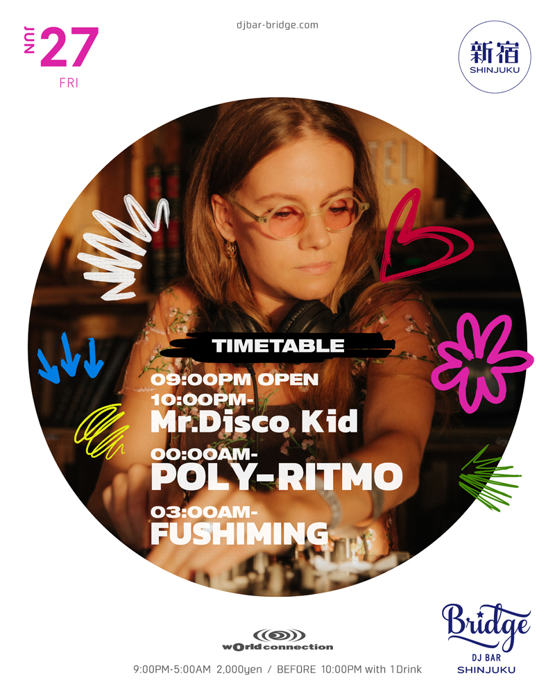 15歳にはロンドンのレコードショップSound of The Universeでワークエクスペリエンスを始め、SOAS ロンドン大学東洋アフリカ学院で民族音楽学を学んだPOLY-RITMOのDJセットは世界各地から選りすぐった鮮やかな音楽でソウルフルかつパーカッシブ、そして折衷的な選曲によって多様なジャンルを自在に織り交ぜる。