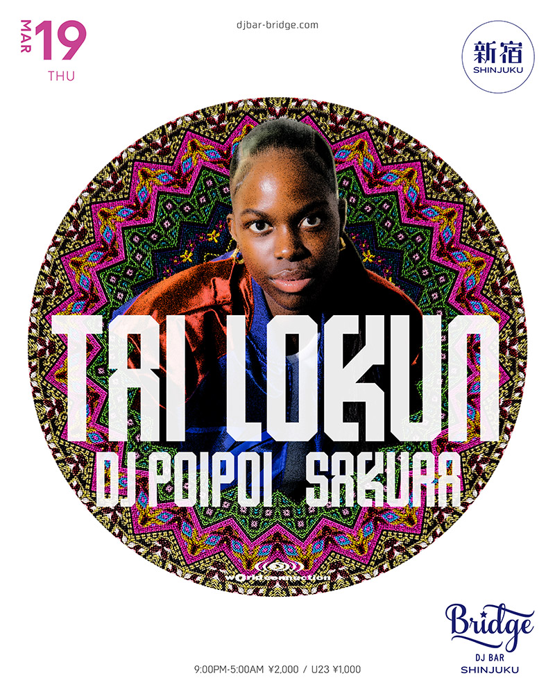 脇を固めるのは、新宿Bar BridgeのレジデントであるDJ POIPOI、そして、パーティクルー amapinight(アマピナイト) のSAKURAだ。アマピアノからダンスホール、ジャングルまで世界中のさまざまなダンスミュージックを自由自在にクロスオーバーする2人がTai Lokunと共に、ダンスフロアを音の世界旅行へ誘う。